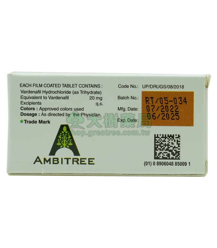 【活性成分】: 伐地那非vardenafil 20mg